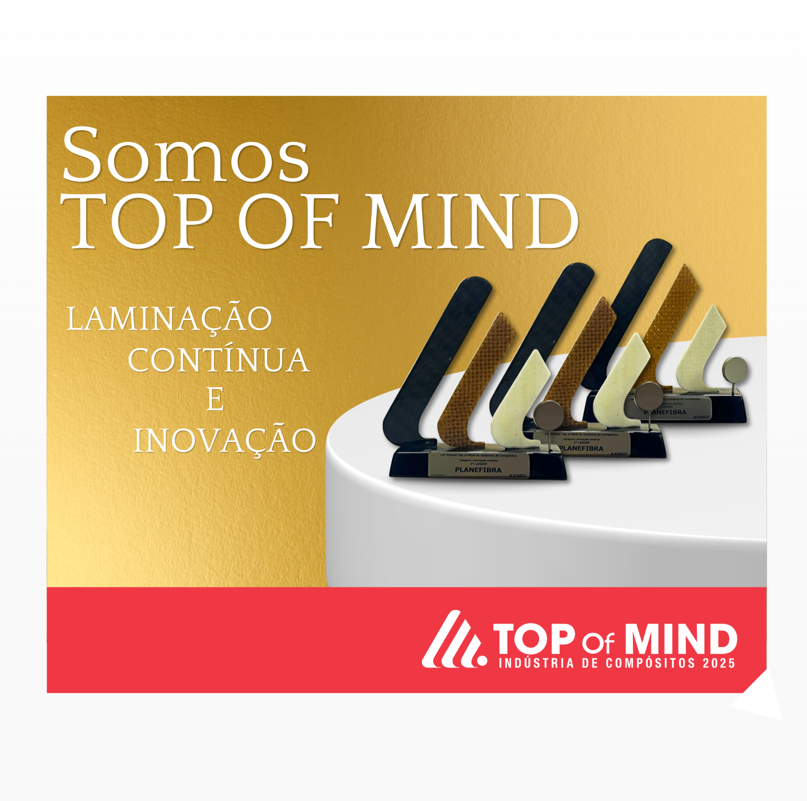 Três vezes consecutivas Top of Mind da Indústria de Compósitos na categoria “Laminação Contínua” e, pela primeira vez, a mais lembrada em “Inovação”.